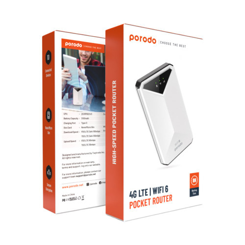 مودم جیبی 4G/LTE پرودو Porodo 4G LTE & WiFi 6 Pocket Router PD-PT4GRWD-WHناموجود
