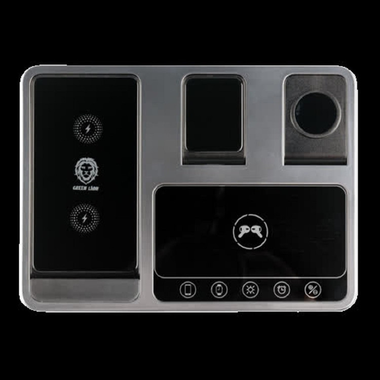 ویژگیهای محصول ۱.: خروجی تلفن: 5W/7.5W/10W/15W ۲.: بالابر خودکار با یک لمس ۳.: خروجی هدفون: ۵ وات ۴.: خروجی ساعت: ۲.۵ وات ۵.: ورودی Type-C: .: دارای پد شارژ بی سیم برای بیش از ۴ دستگاه ۷.: شارژ بی سیم گوشی هوشمند