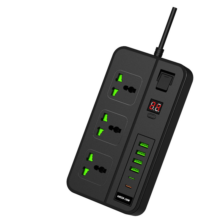 پریزها: 3 × سوکت + 4 × USB-A + 2 × USB-C: خروجی USB-A + USB-C: ۵ ولت ۳.۴ آمپر